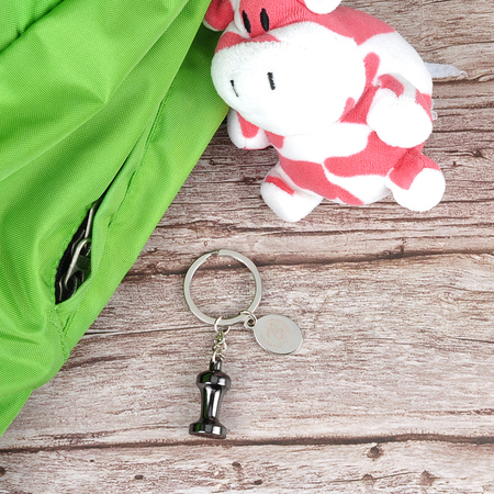 Brelok Barista Space w kształcie tampera, z dodatkową zawieszką z logo marki. Świetny ozdoba, brelok do kluczy lub pomysł na prezent dla miłośnika kawy.